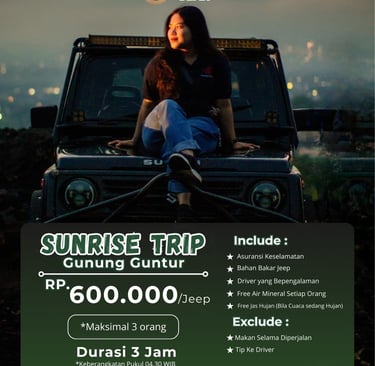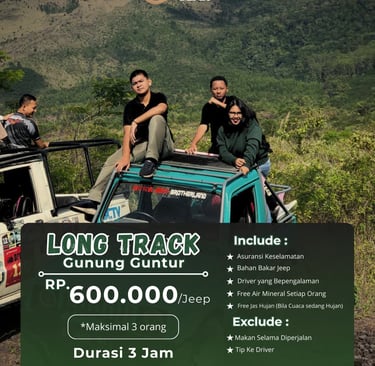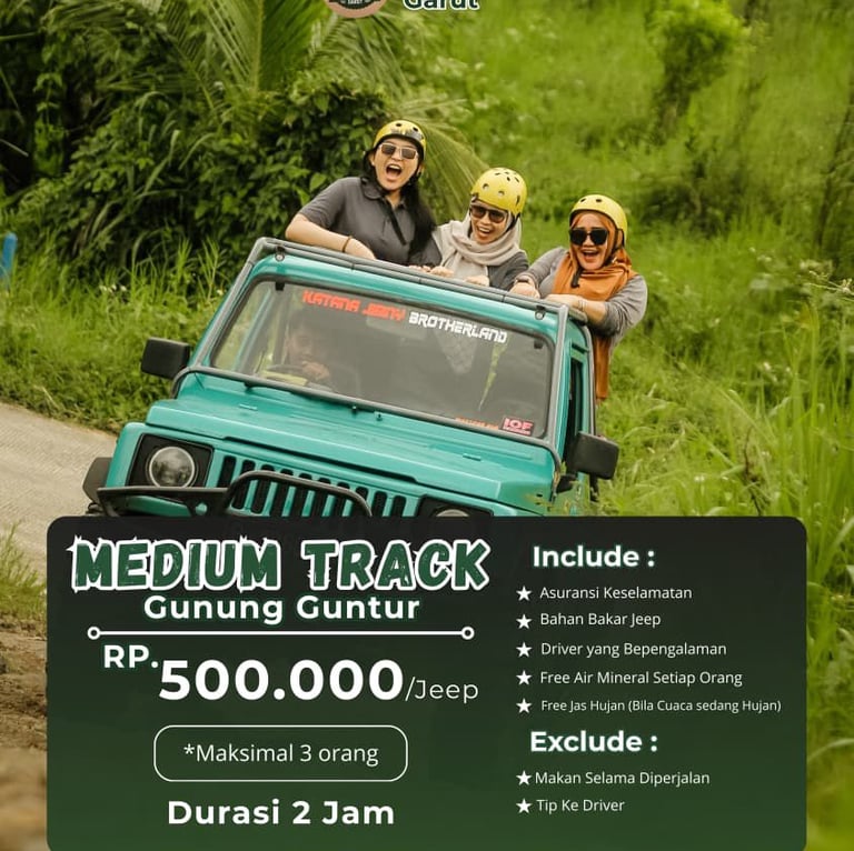 Pilih paket offroad seru di Garut dengan driver berpengalaman.
